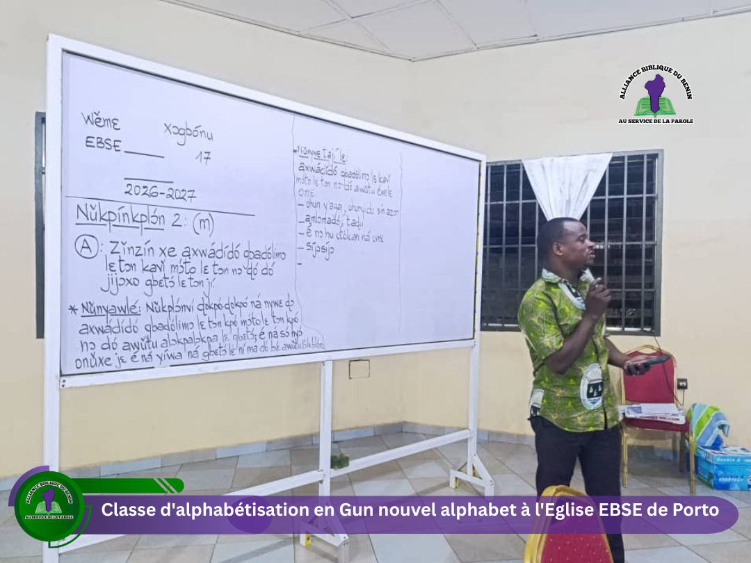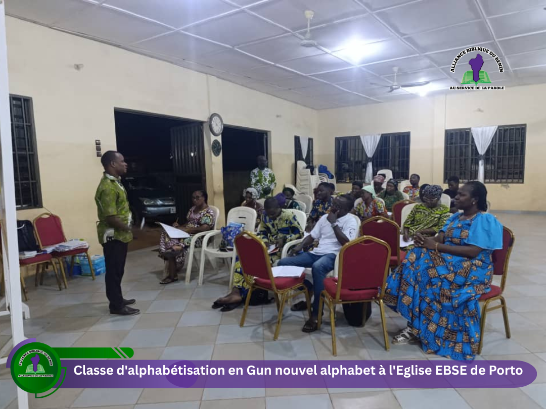 Classe d’alphabétisation en Gun nouvel alphabet à l’Eglise EBSE de Porto-Novo