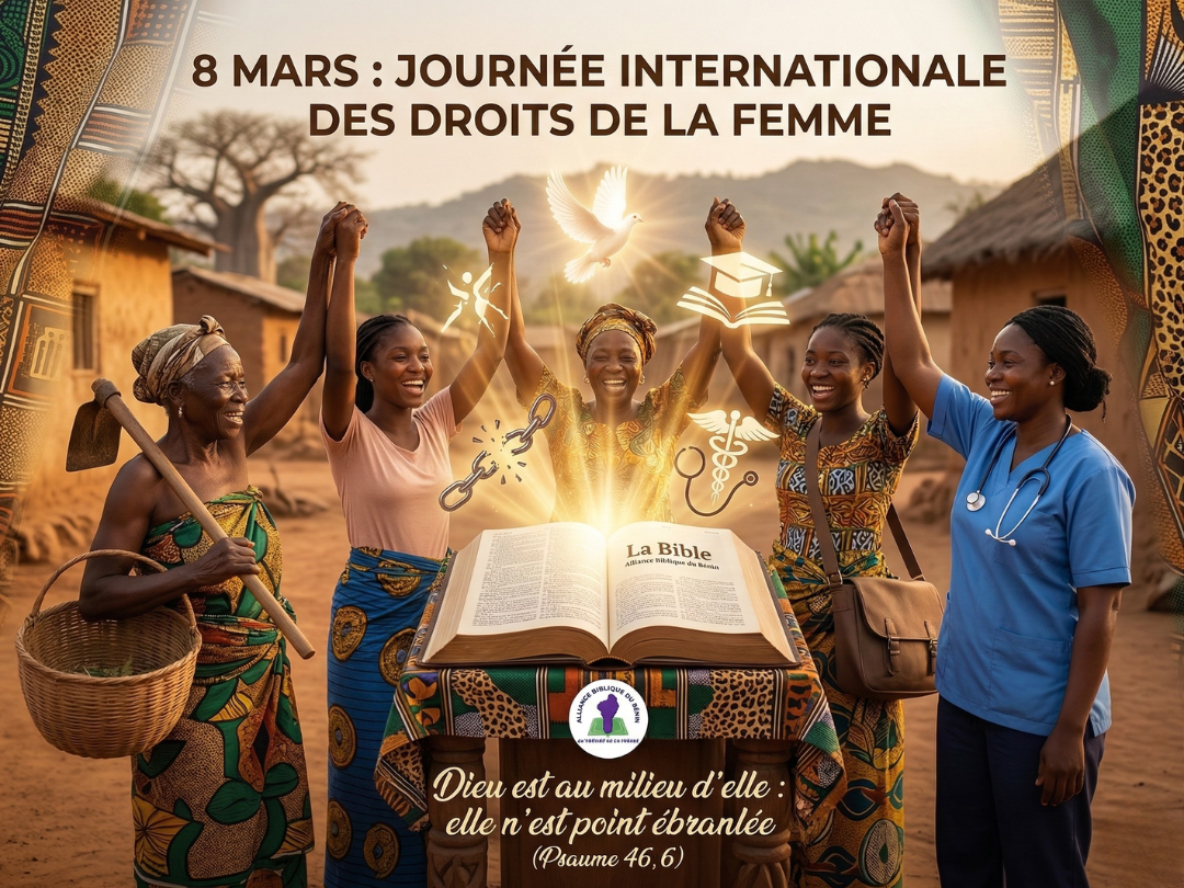À l’occasion de la Journée Internationale des Droits de la Femme, l’Alliance Biblique du Bénin (ABB) réaffirme son engagement à rendre la Parole de Dieu accessible à toutes. Nous croyons que l’accès aux Écritures est un levier puissant pour l’éducation, la justice sociale et l’autonomisation des femmes.