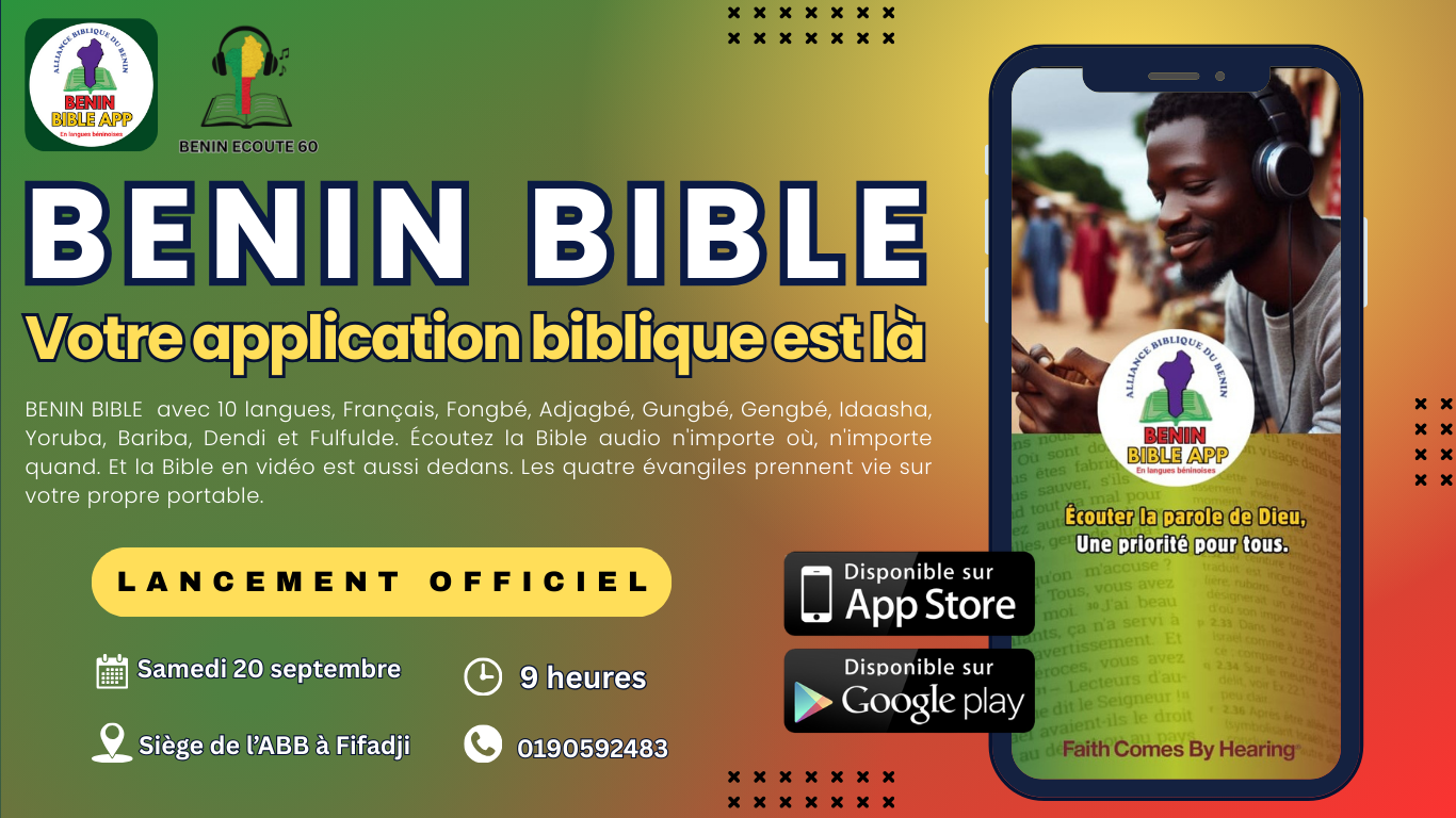 Ce sera ce samedi 20 septembre à 9h00 au siège de l’Alliance Biblique du Bénin à Cotonou, Fifadji, rue en face de la pharmacie Palace Plus