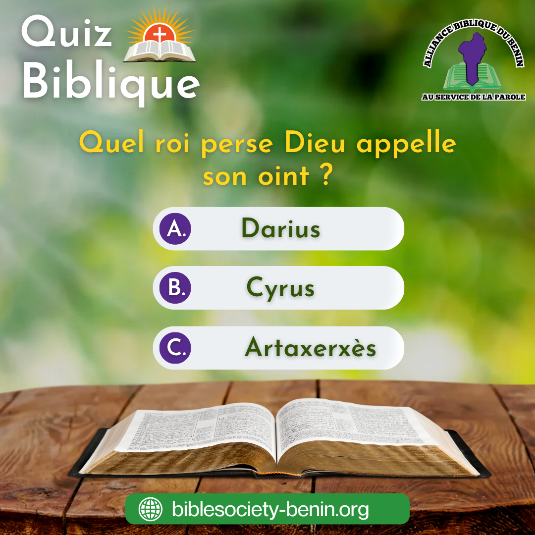 Quel roi perse Dieu appelle-t-il son oint dans la Bible ? C’est la question que nous vous posons aujourd’hui dans notre Quiz Biblique. Darius, Cyrus ou Artaxerxès — l’un de ces rois a reçu un titre extraordinaire directement de la bouche de Dieu. Saurez-vous lequel ?
