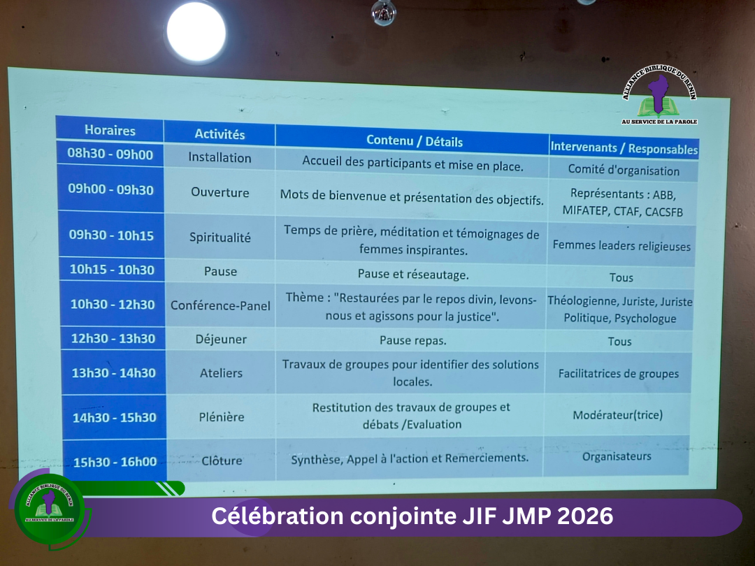 L’Alliance Biblique du Bénin remercie chaleureusement les participants, les intervenants, les partenaires et les bénévoles. Rendez-vous est pris pour les prochaines éditions, avec la conviction que la foi et l’action, main dans la main, construisent un monde plus juste.